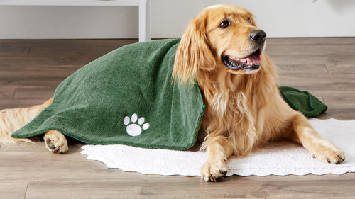 Microfiber Pet Robe, Trellis Paw Print - Stonewash Blue - Medium, 20-35 Lbs