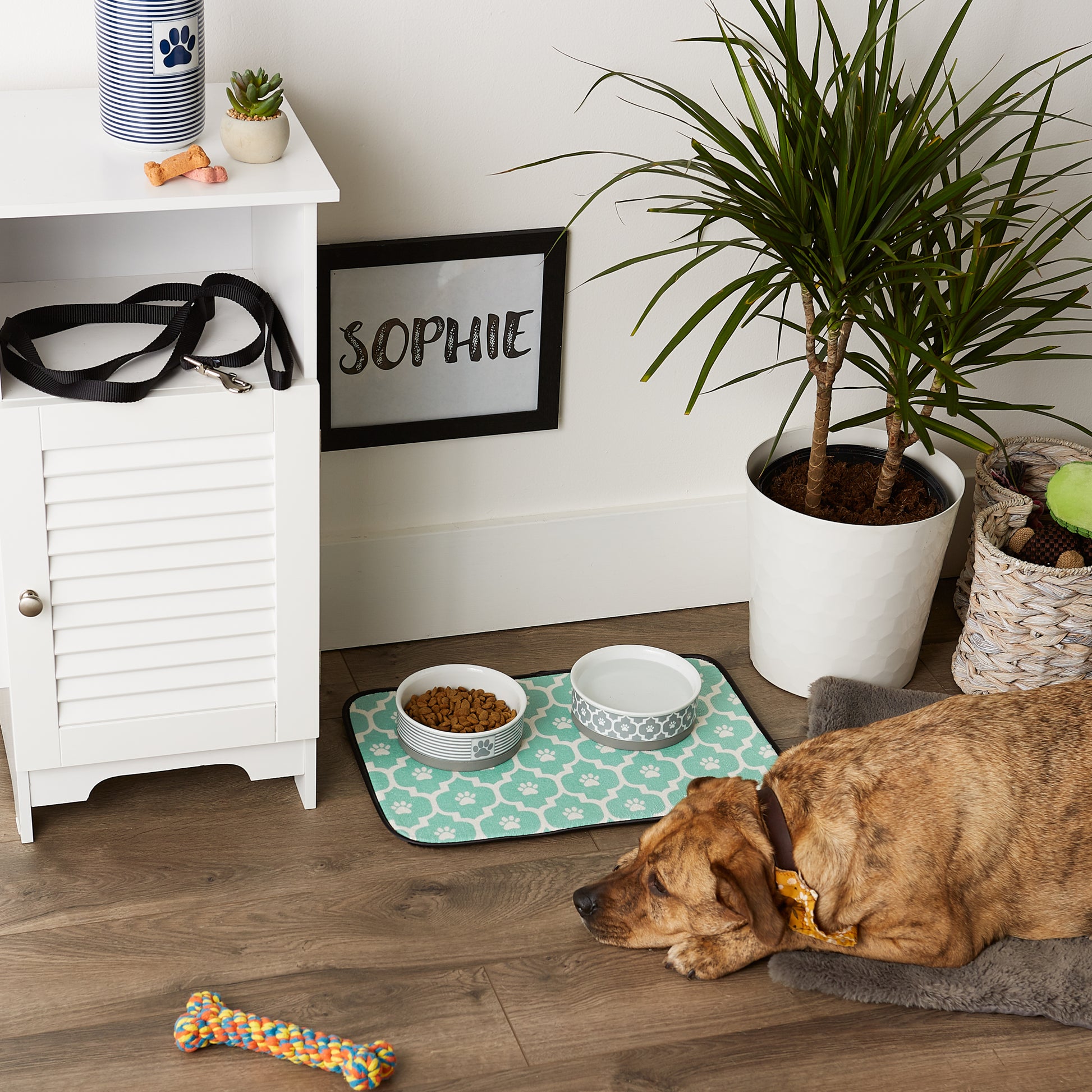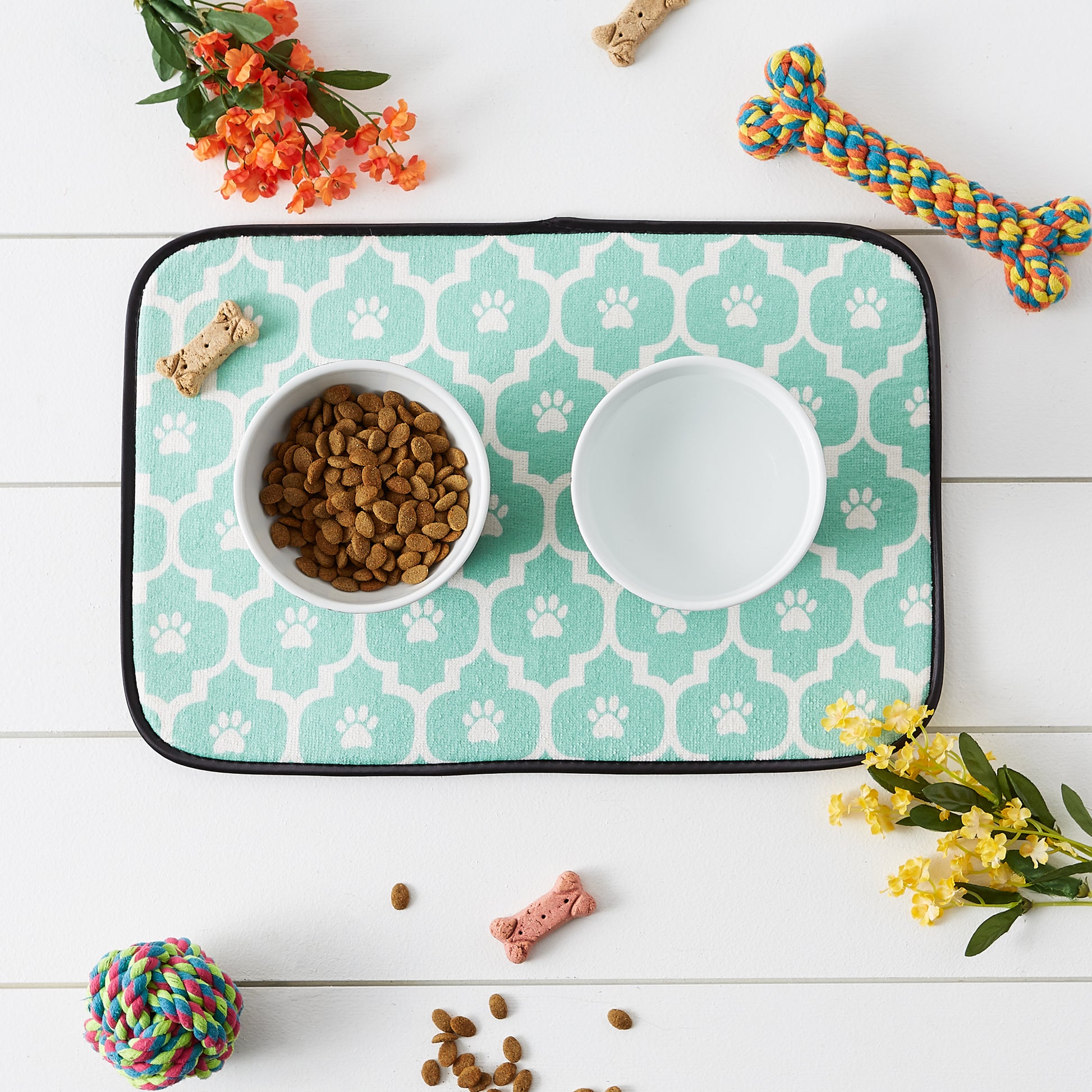 - Pet food mat comes with two sizes and various designs, provides your pet with a stylish and appealing dining space.