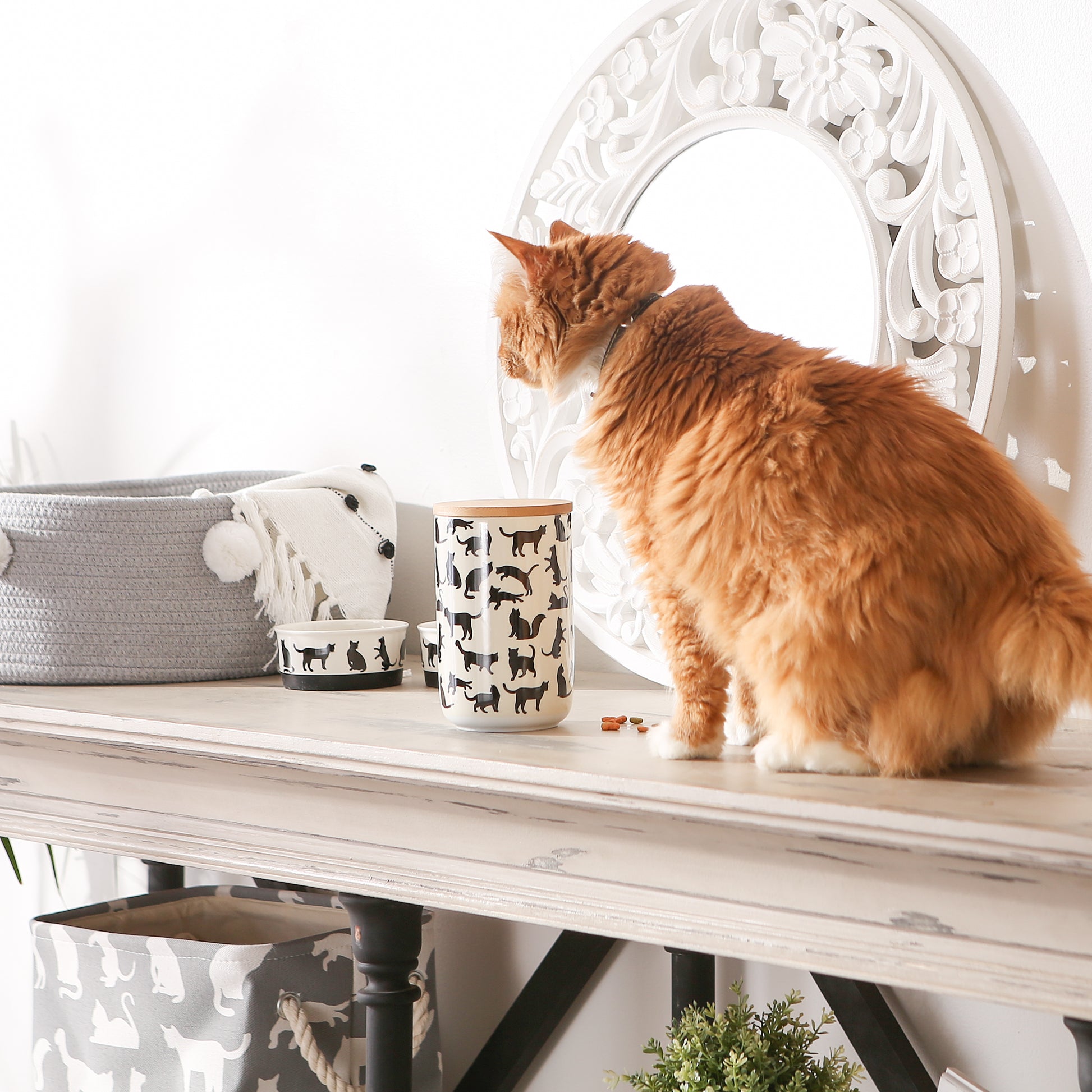 Black/White Cat's Meow Pet Treat Canister 4 Cup Capacity