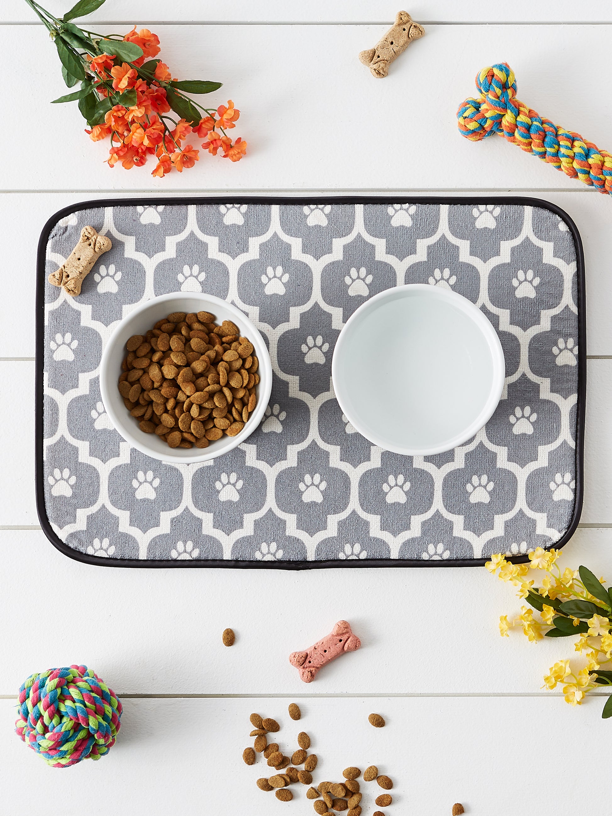 - Pet food mat comes with two sizes and various designs, provides your pet with a stylish and appealing dining space.