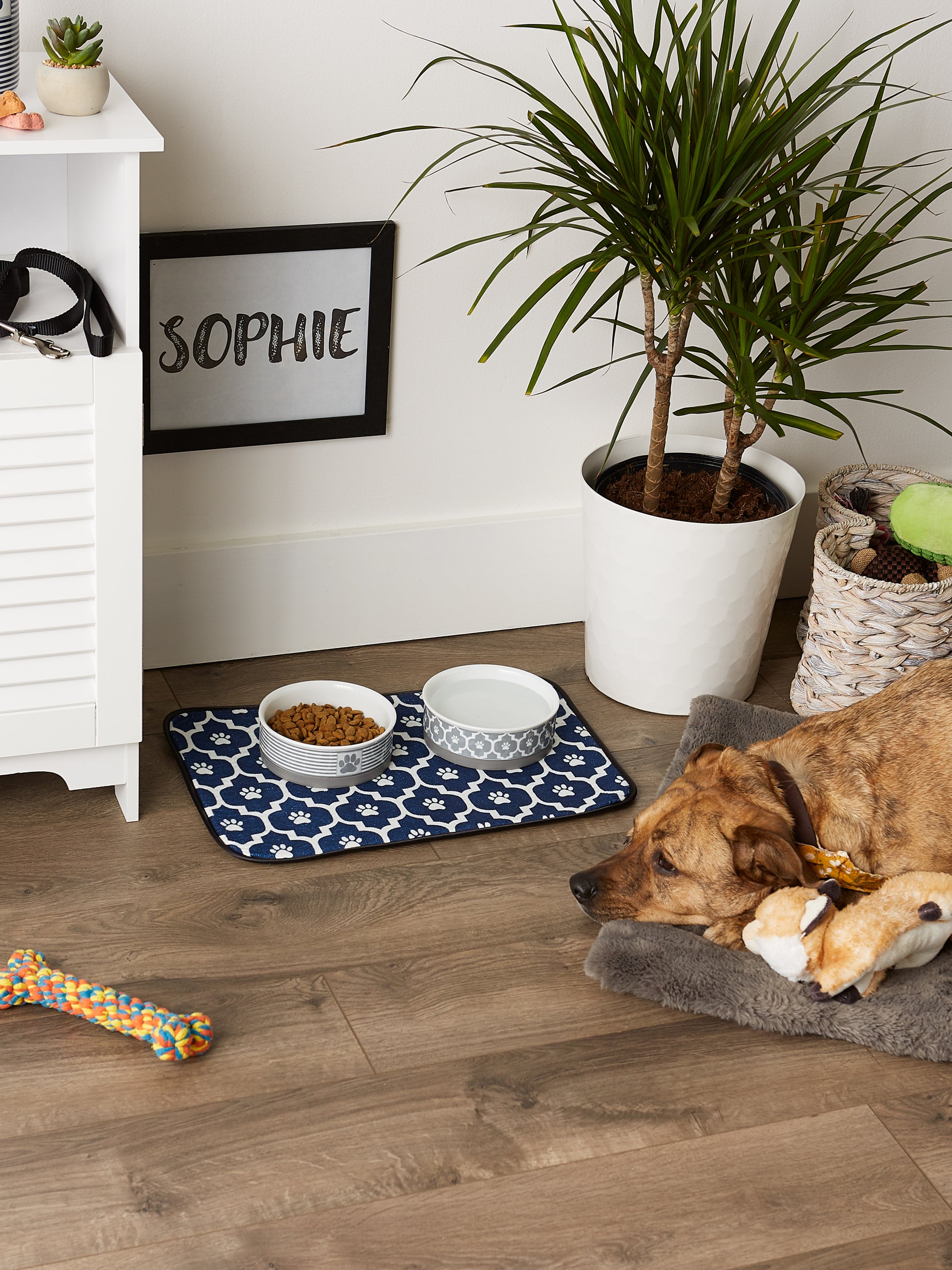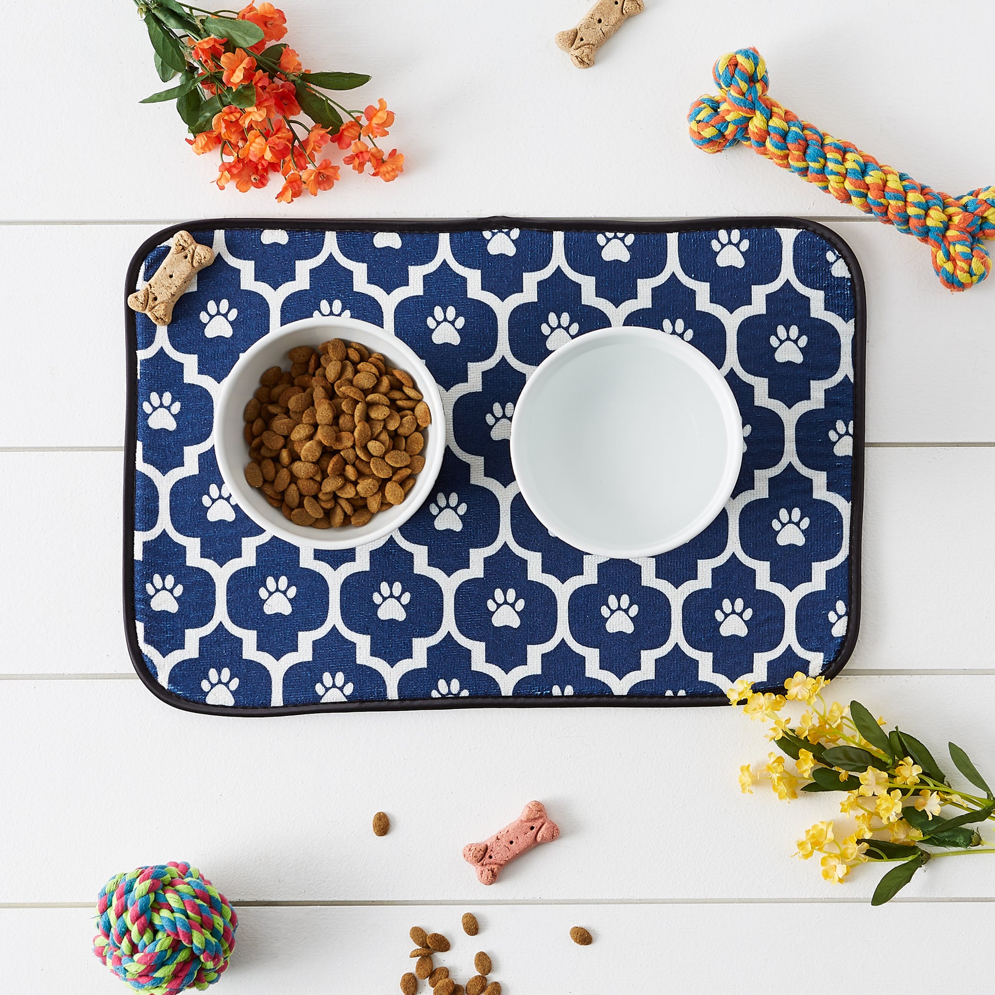 - Pet food mat comes with two sizes and various designs, provides your pet with a stylish and appealing dining space.