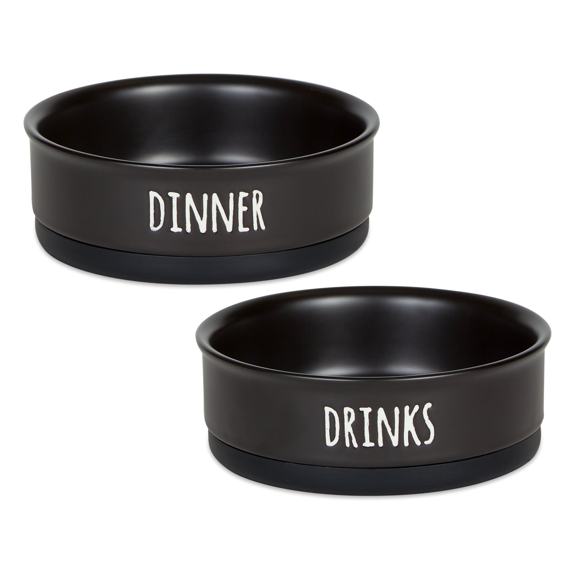 Black Dinner Drinks & Dessert Pet Bowl Set of 2, Medium - 1.5 C. Capacity