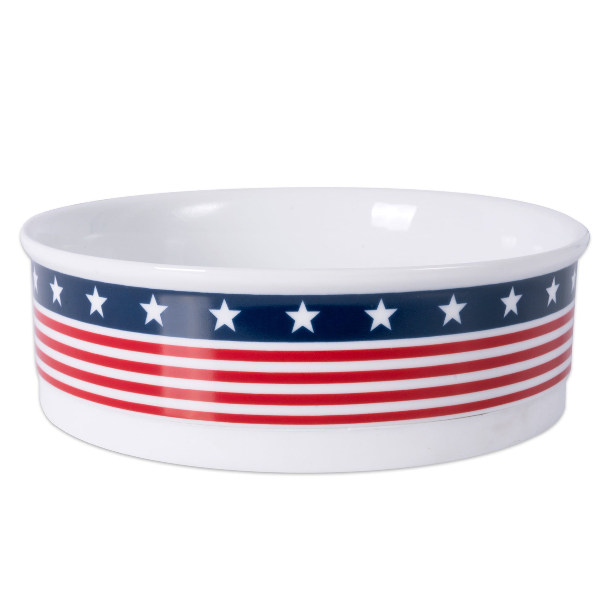 - Delight your hungry pup or sassy cat with a fun printed food or water dish. Bring it out to use for 4th of July or use all year-round. Suitable for food and water.