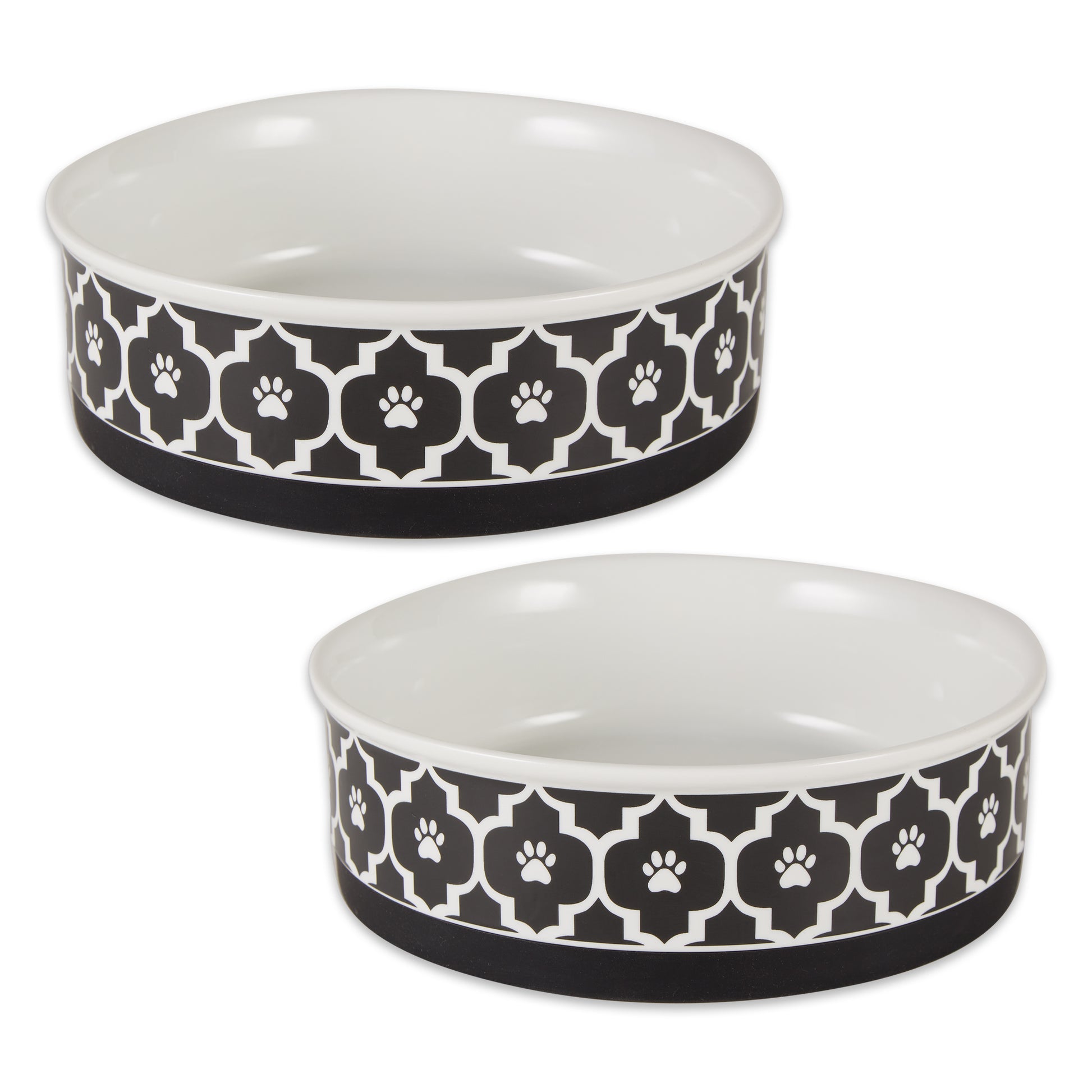 Black Lattice Paw Print Pet Bowl Set of 2, Large 3.75 C. Capacity