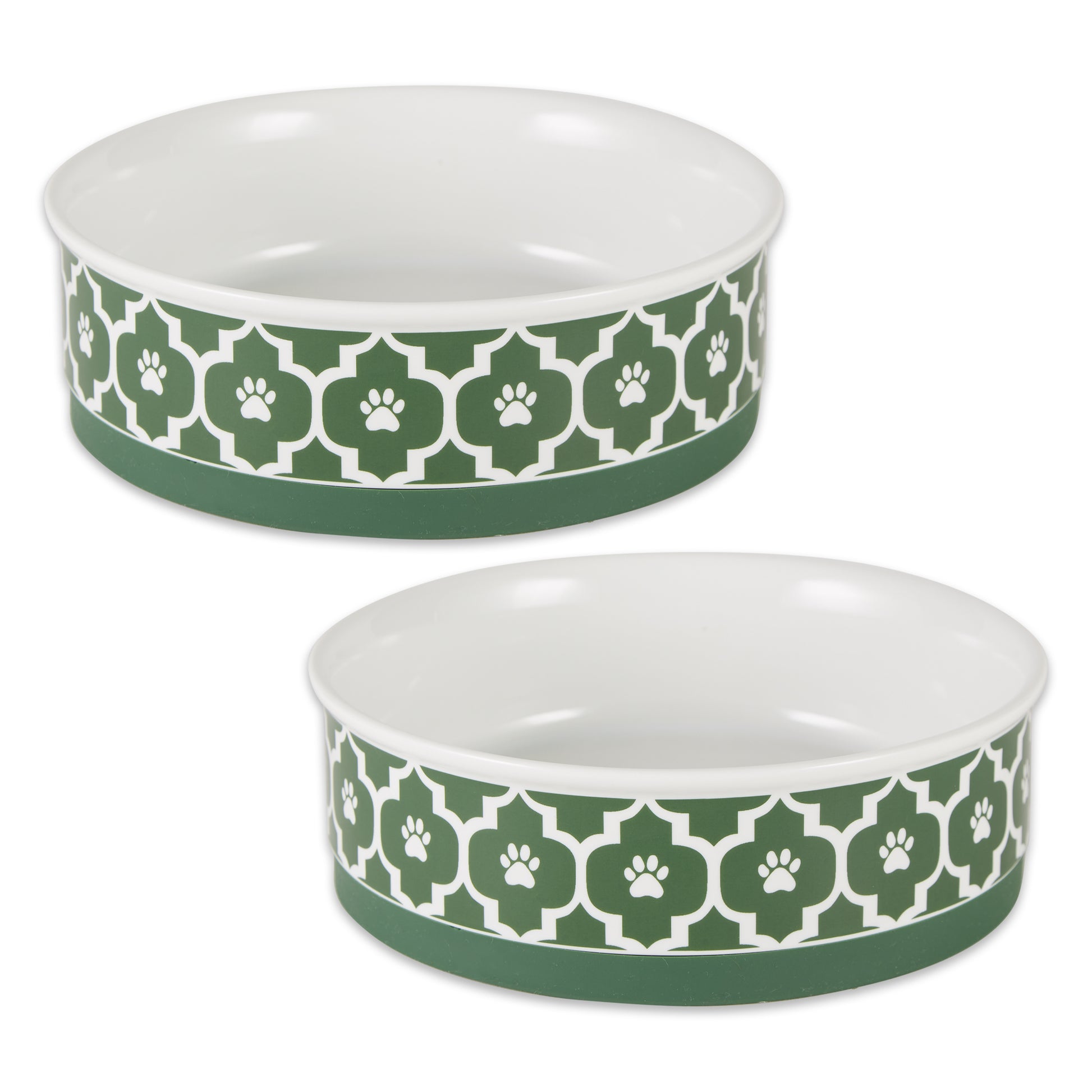 Hunter Green Lattice Paw Print Pet Bowl Set/2, Large 3.75 C. Capacity
