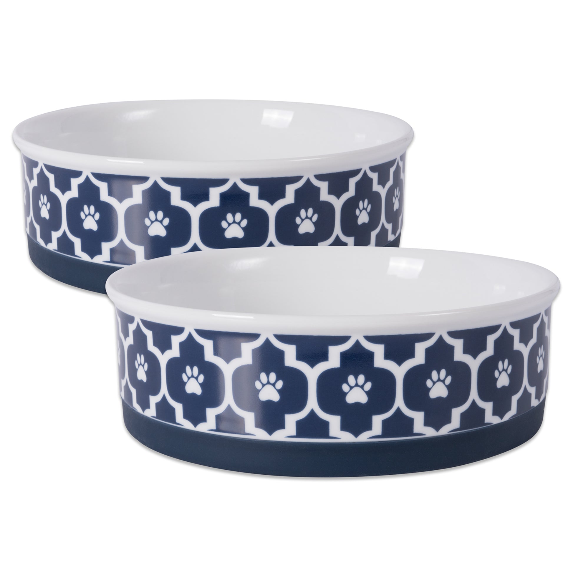 Pet Bowl Lattice Nautical Blue Large 7.5Dx2.4H Set of 2