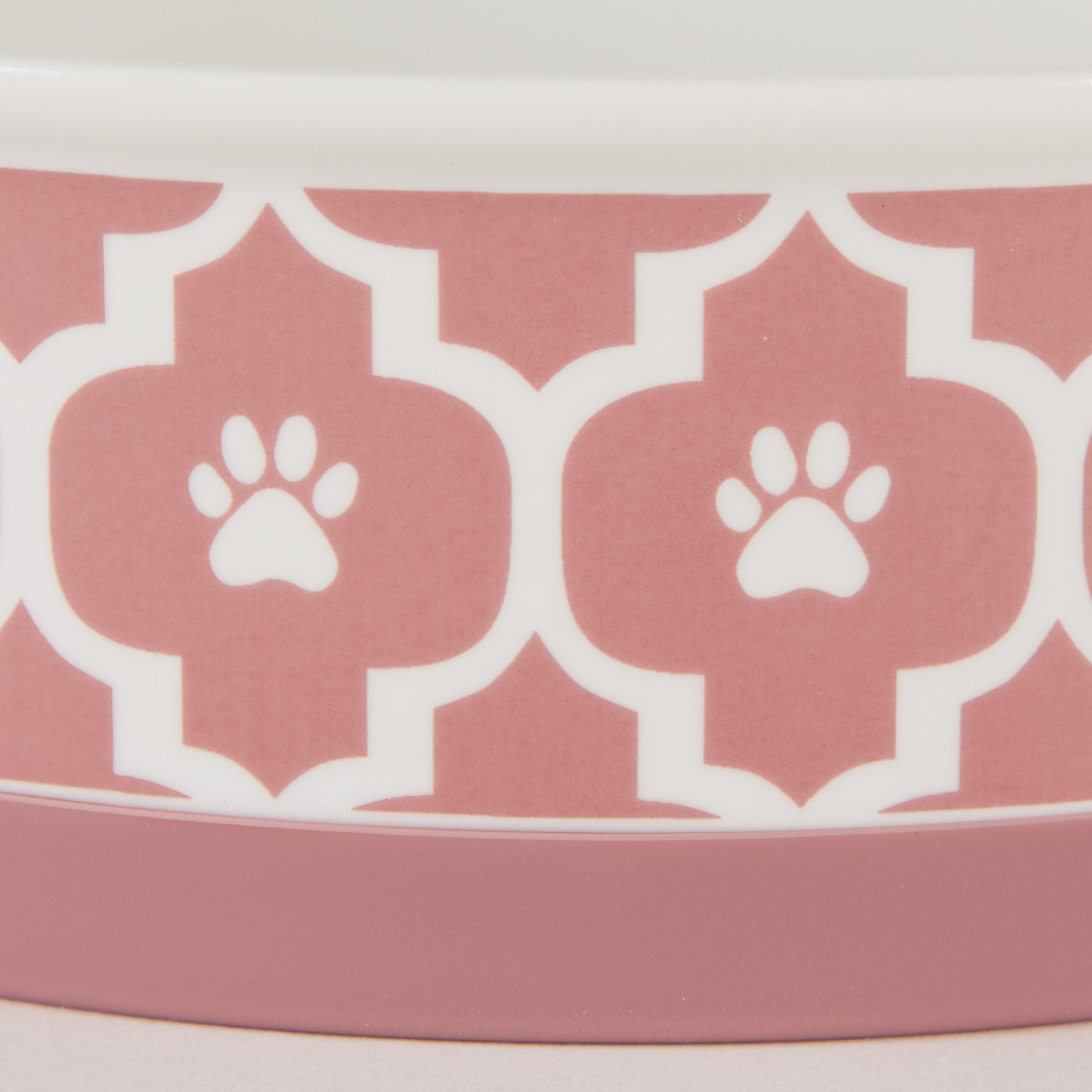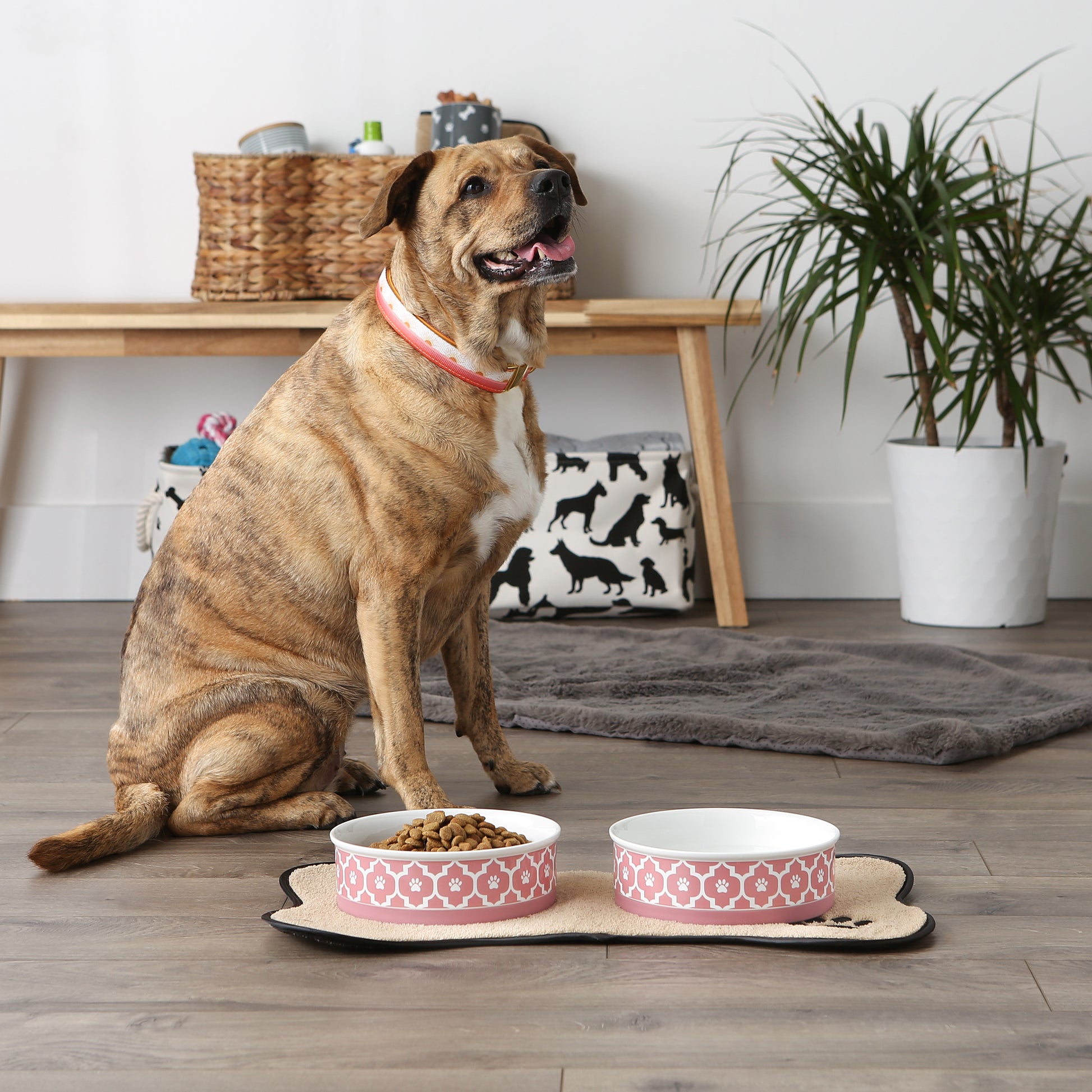 Rose Lattice Paw Print Pet Bowl Set of 2, Large 3.75 C. Capacity