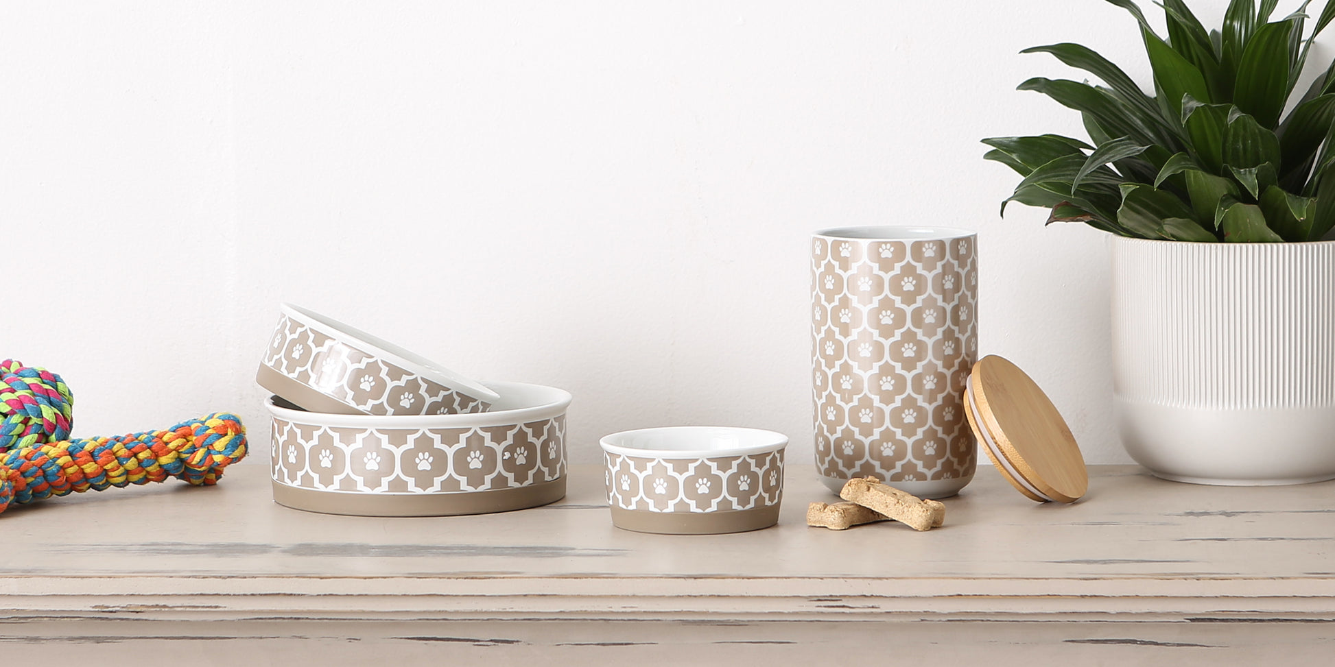 - Delight your hungry pup or sassy cat with a fun printed food or water dish. Stylish and simple design will fit right in with any decor in your home or kitchen.