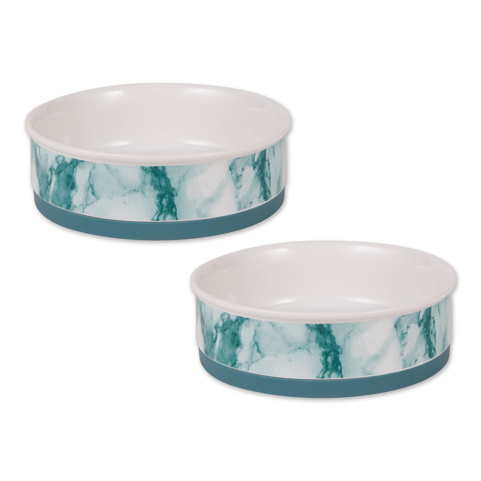 Teal Marble Pet Bowl Set of 2, Large 3.75 C. Capacity