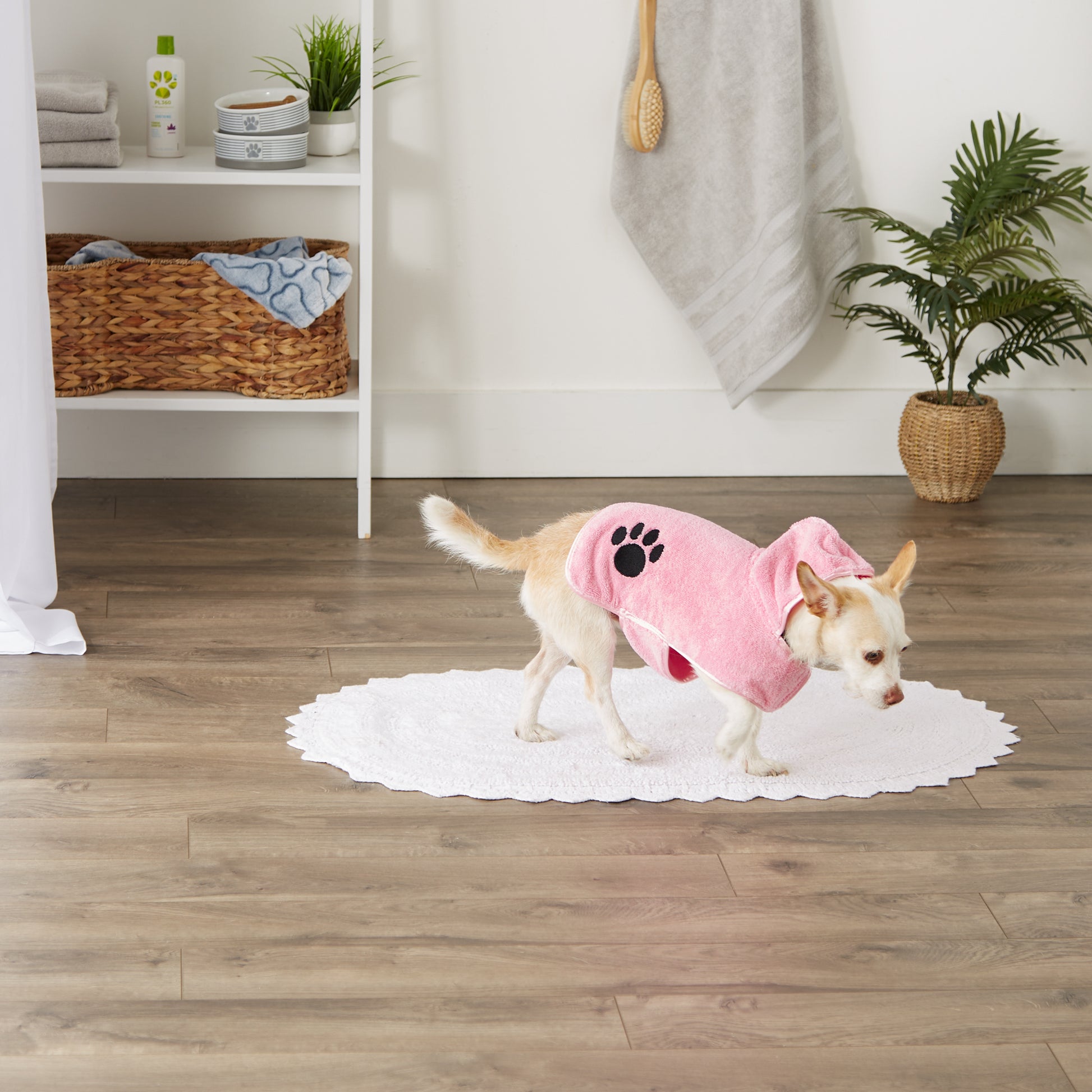 - Pet Robe Measures 17x14 inches and are durable, absorbent, and fast drying.