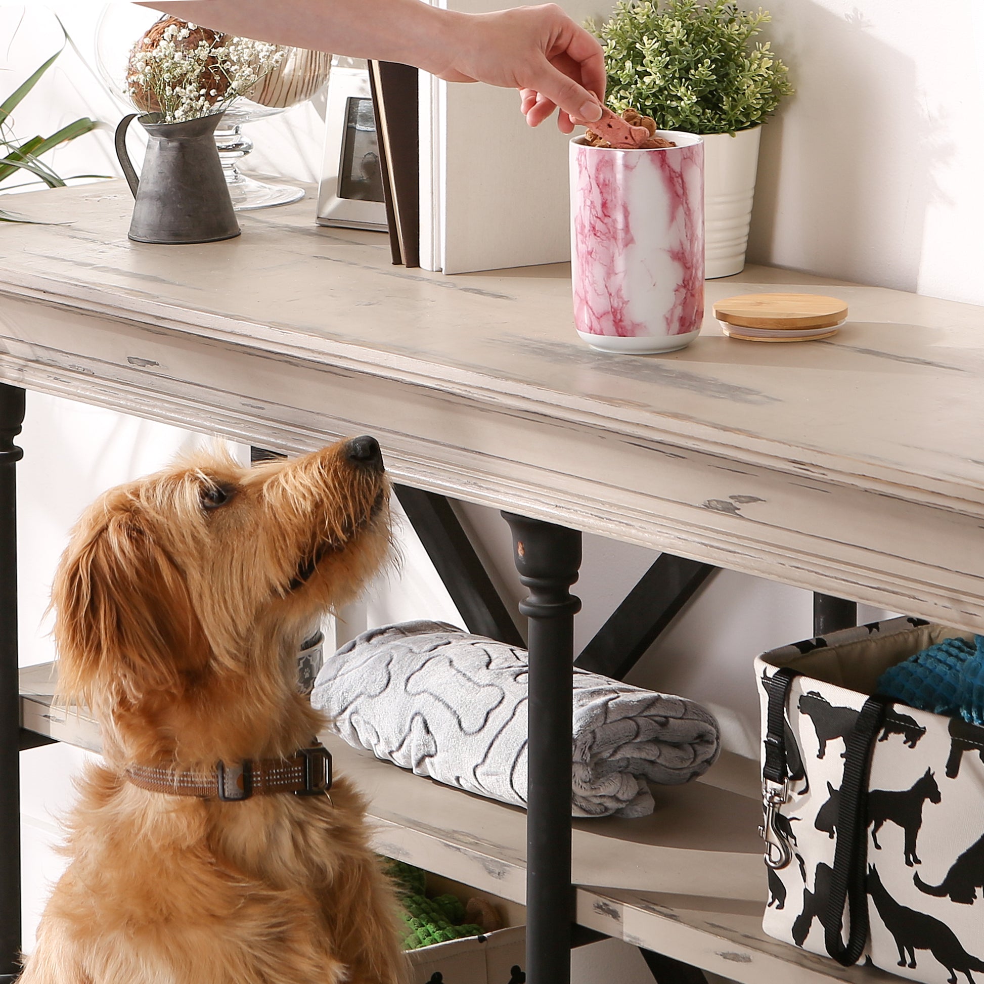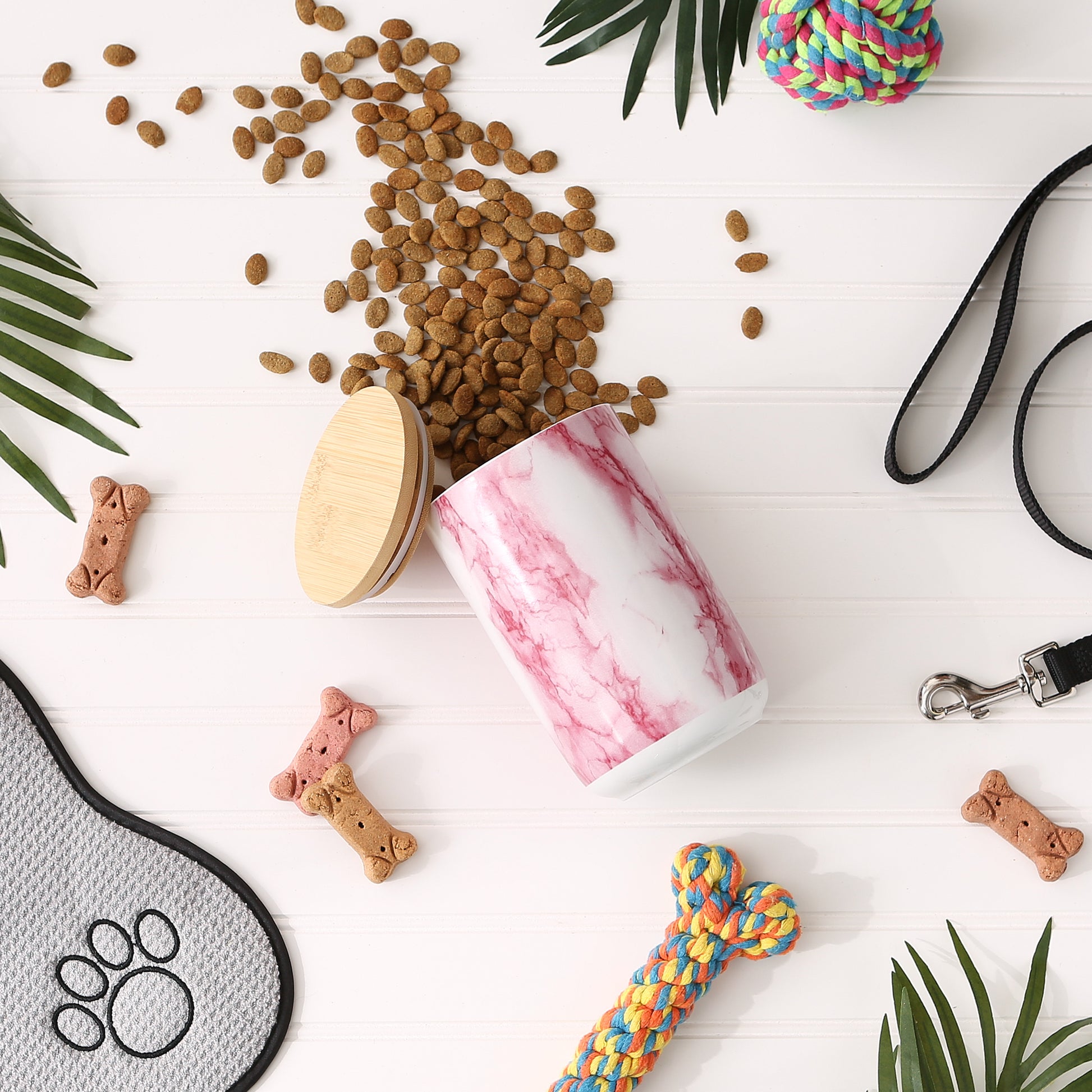 - Treat canister measures 4 inch diameter by 6.5 inch height, perfect for storing pet food, treats for dogs and cats or even your cookies, coffee, tea, cocoa, pasta, spice and herbs.