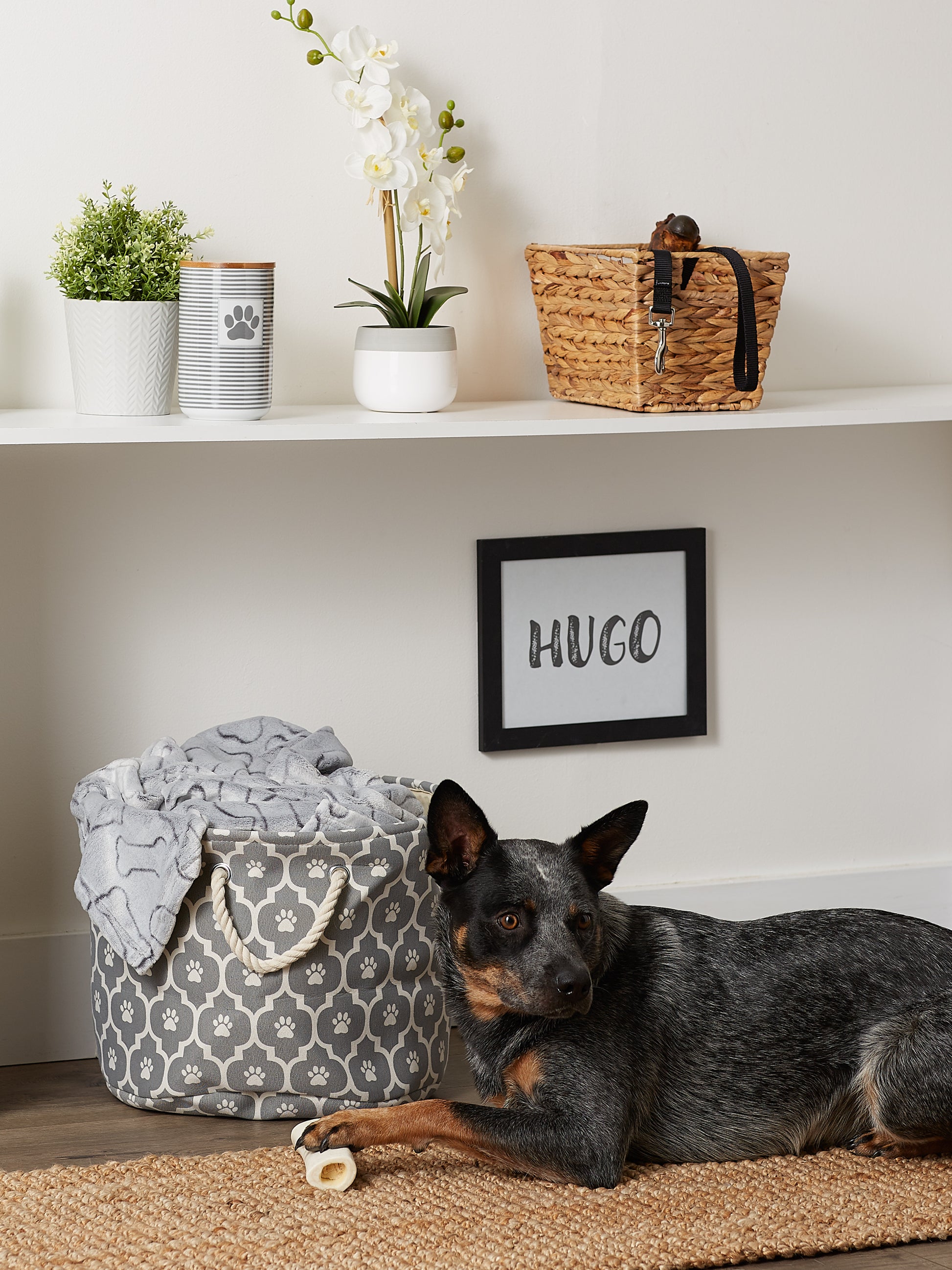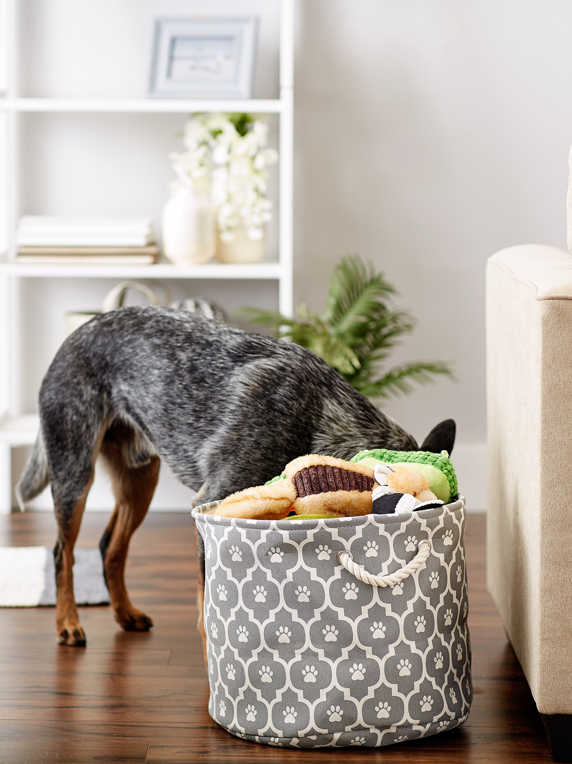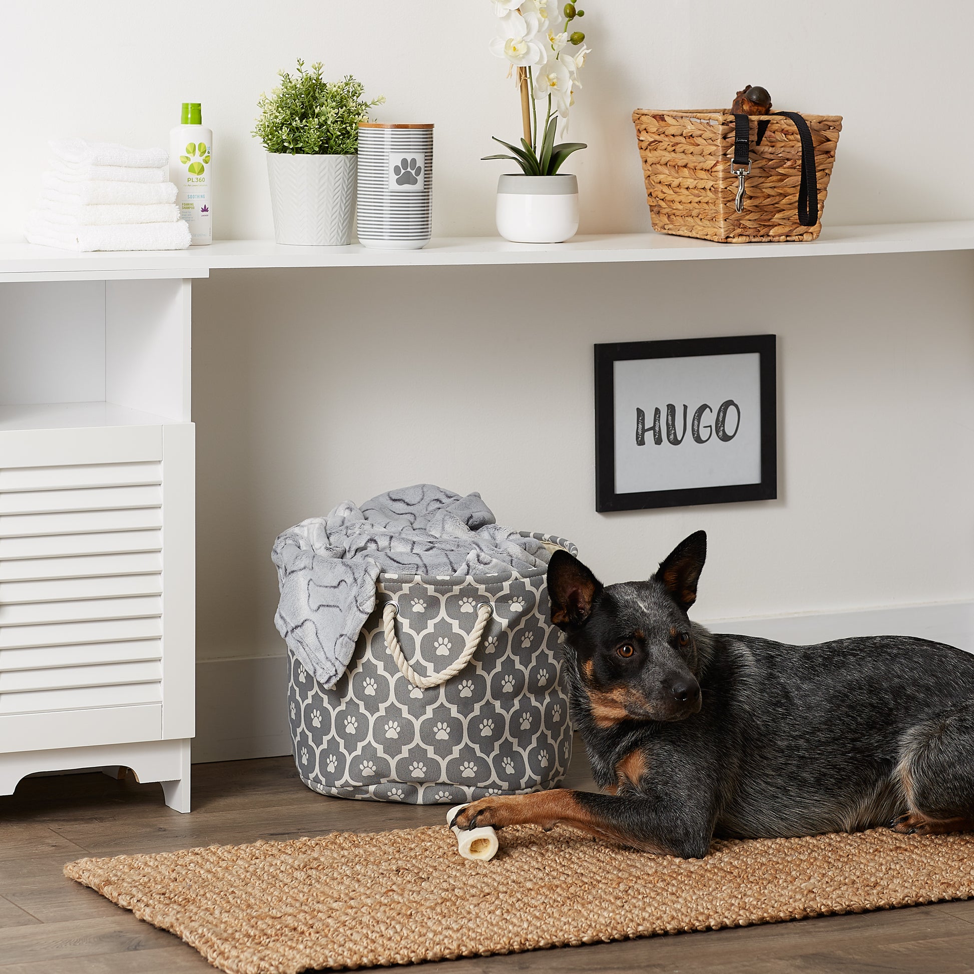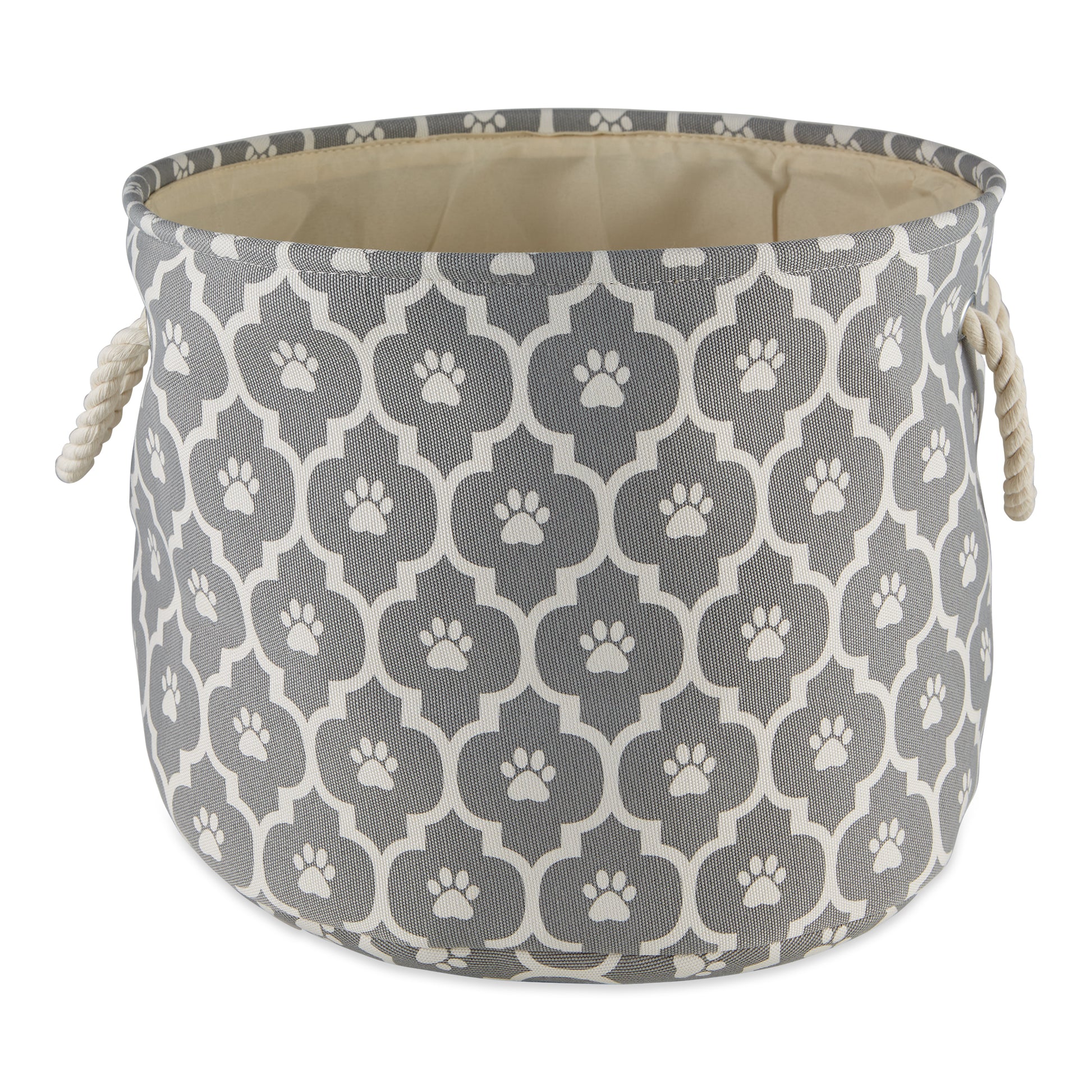 Bone Dry Pet Storage Bin, Lattice Paw Print, Gray, Medium Round - 15x12"