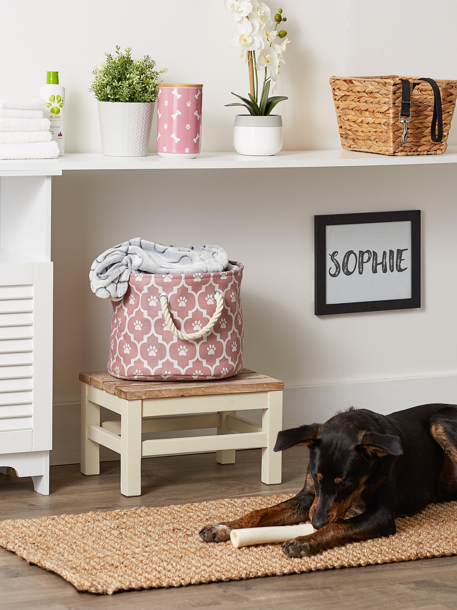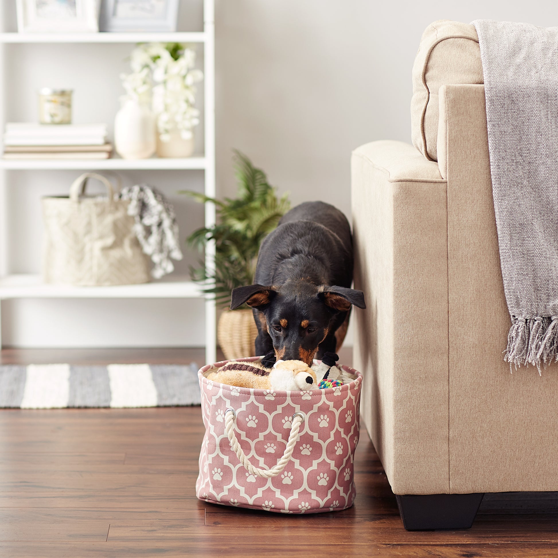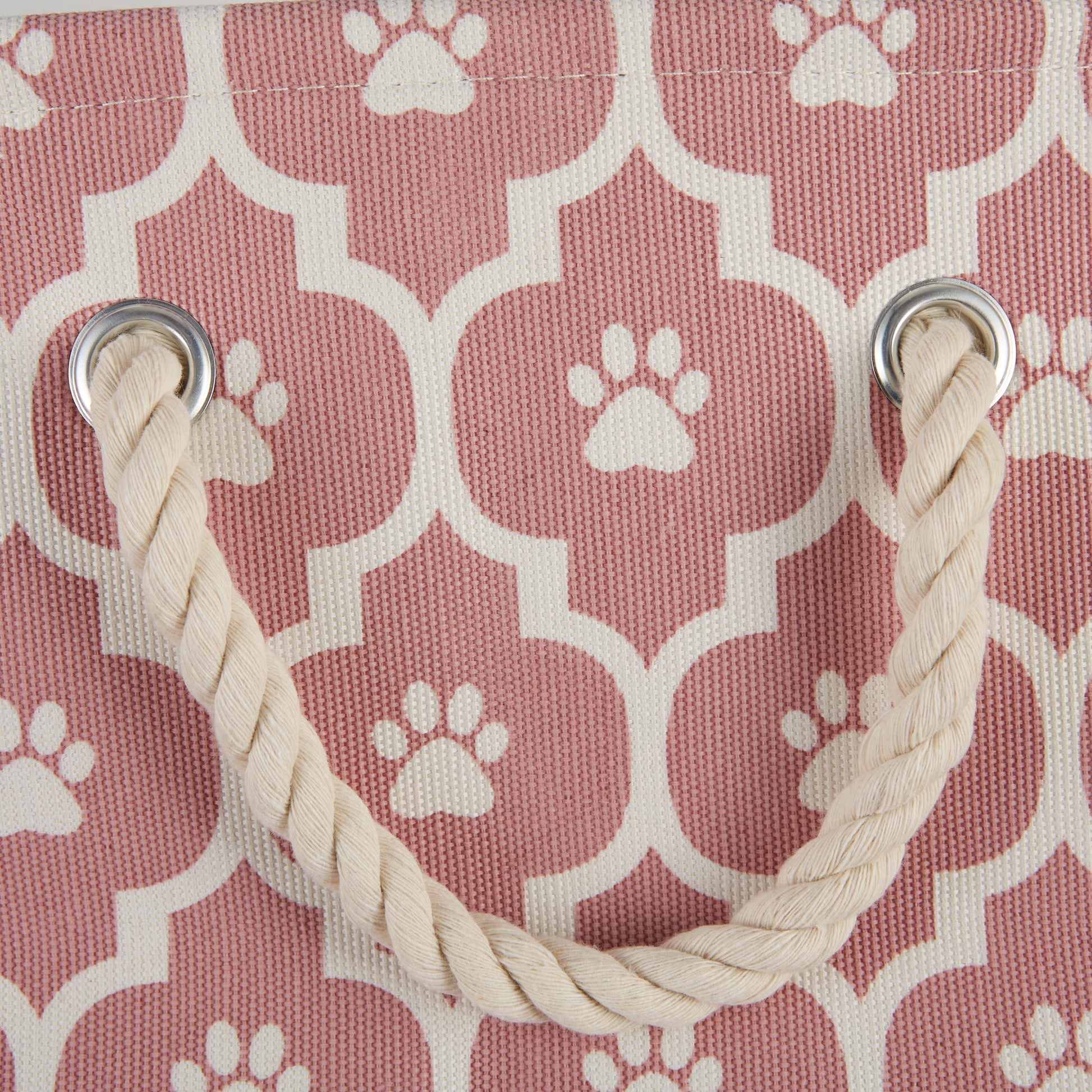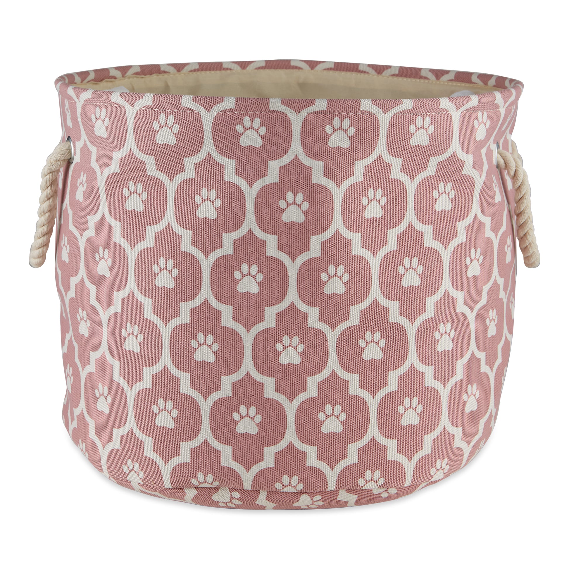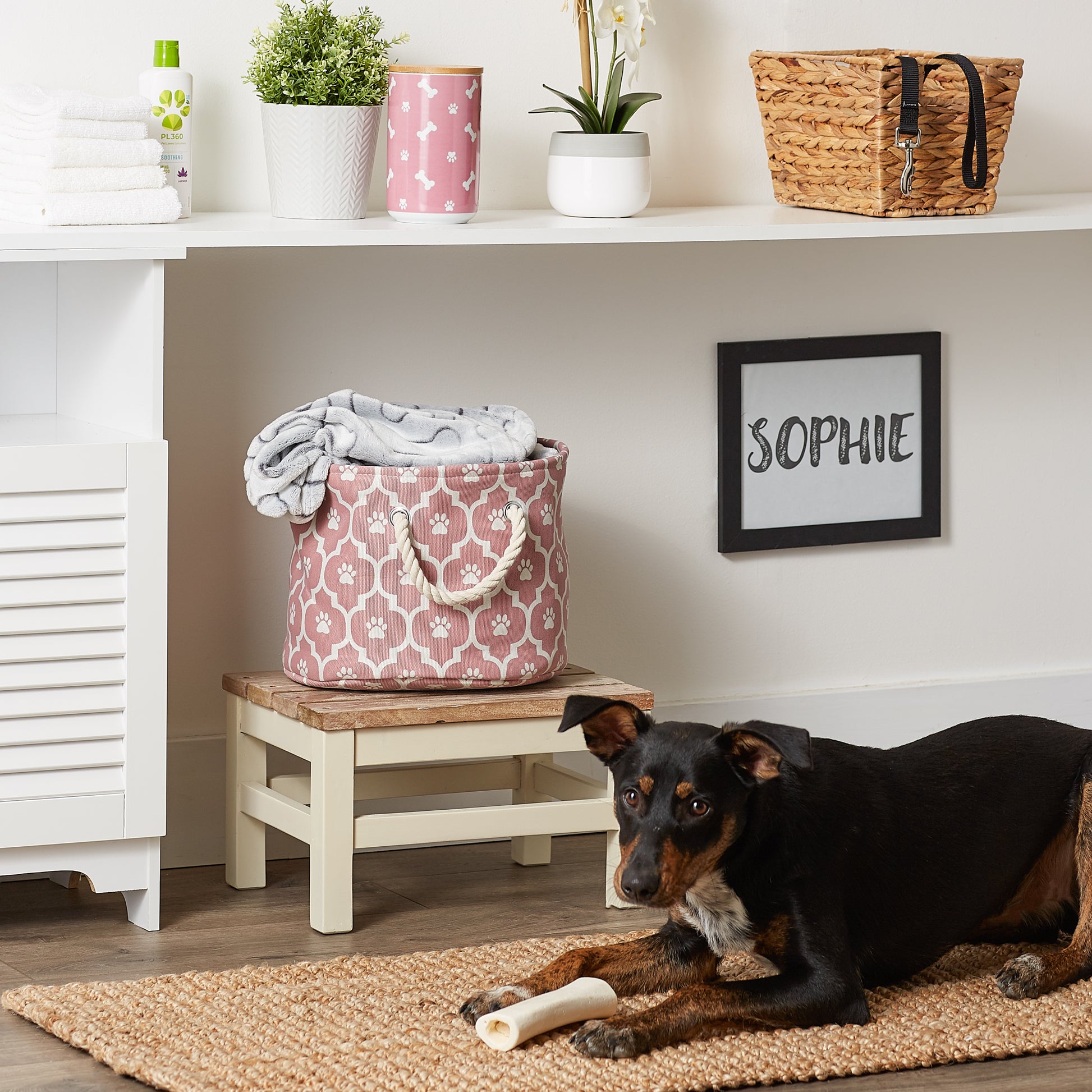 Bone Dry Pet Storage Bin, Lattice Paw Print, Rose, Small Round - 12x9"
