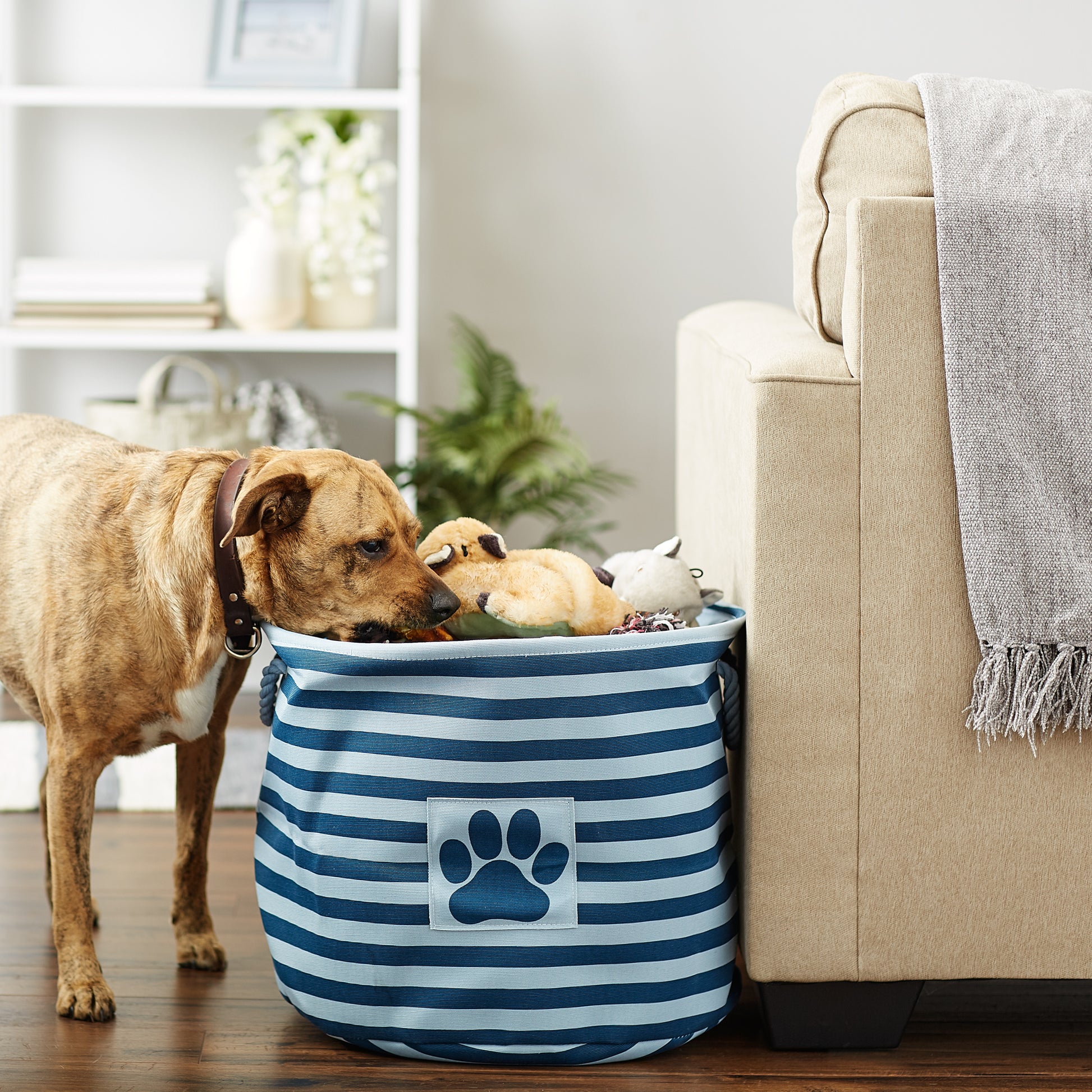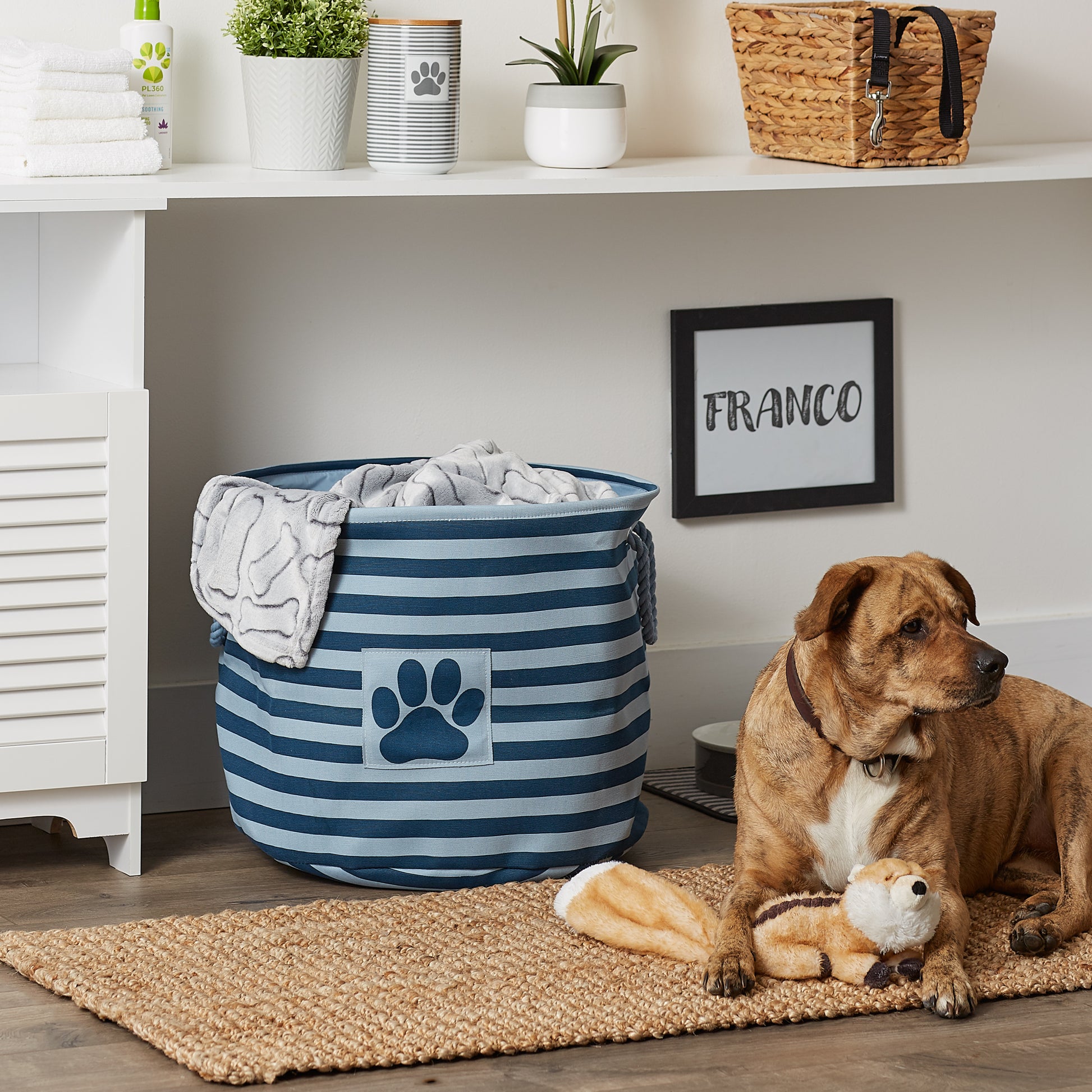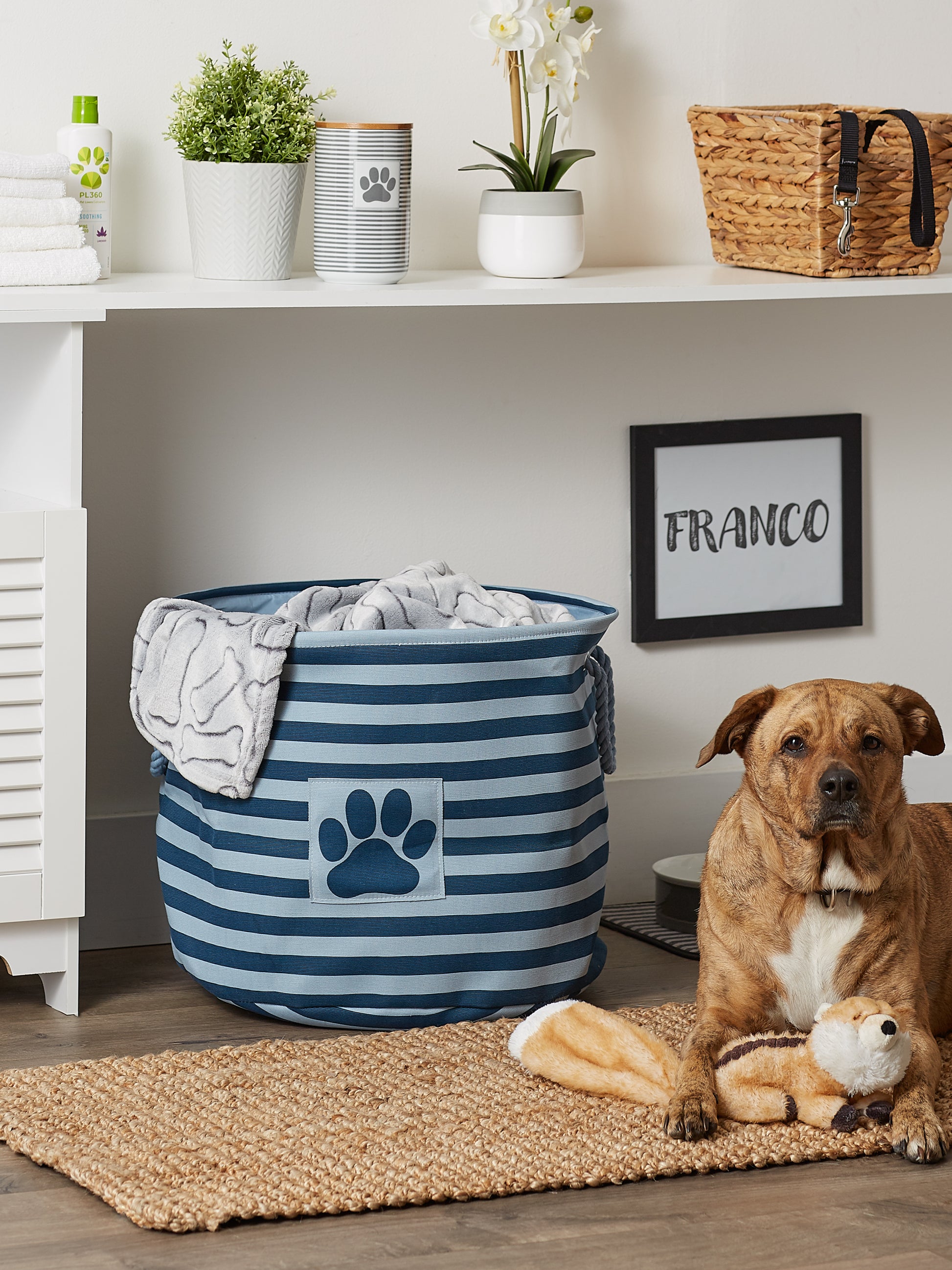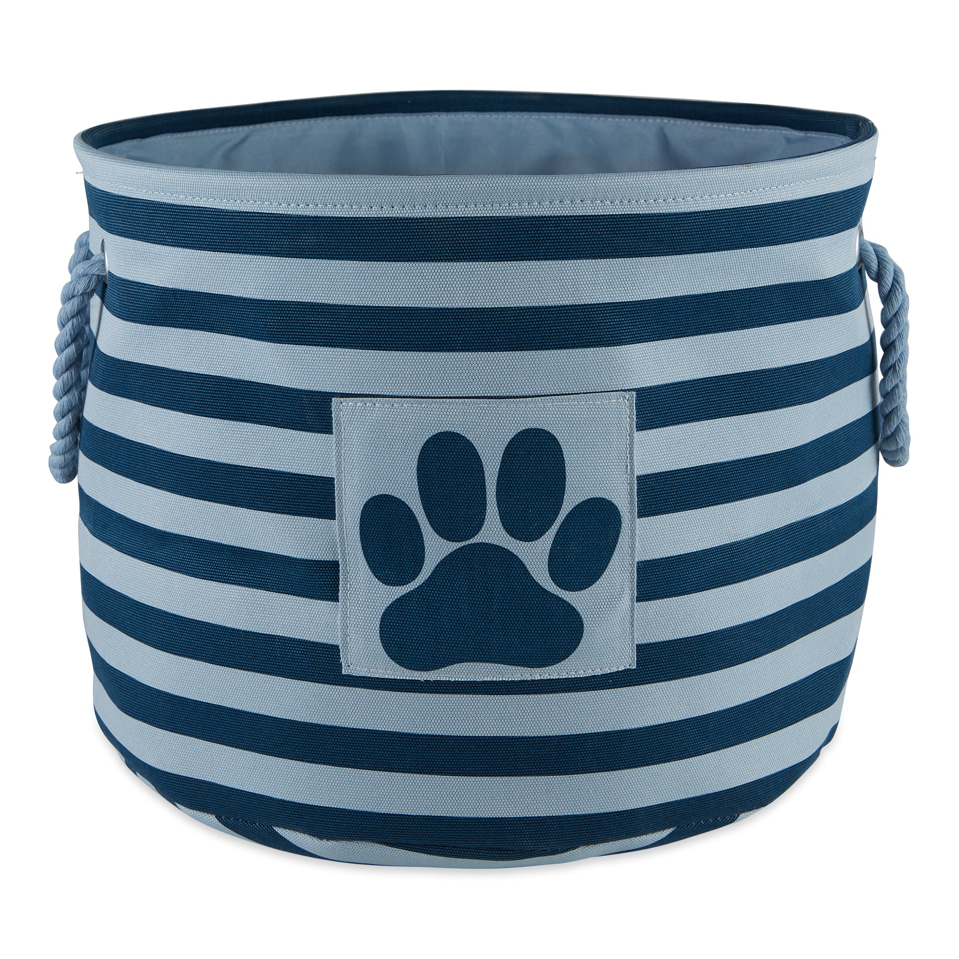 Polyester Pet Bin Stripe With Paw Patch Dark Navy Round Large 15X18X18
