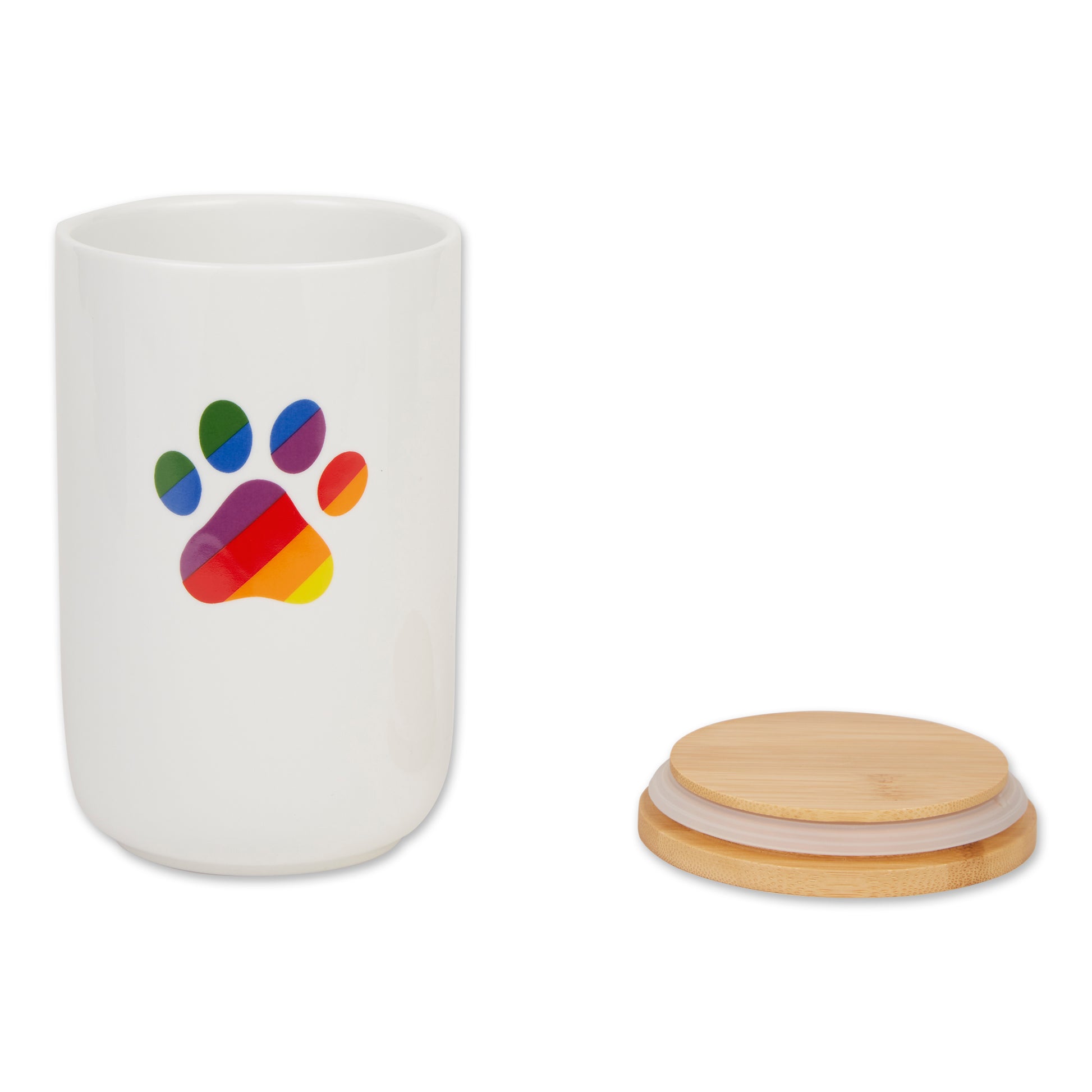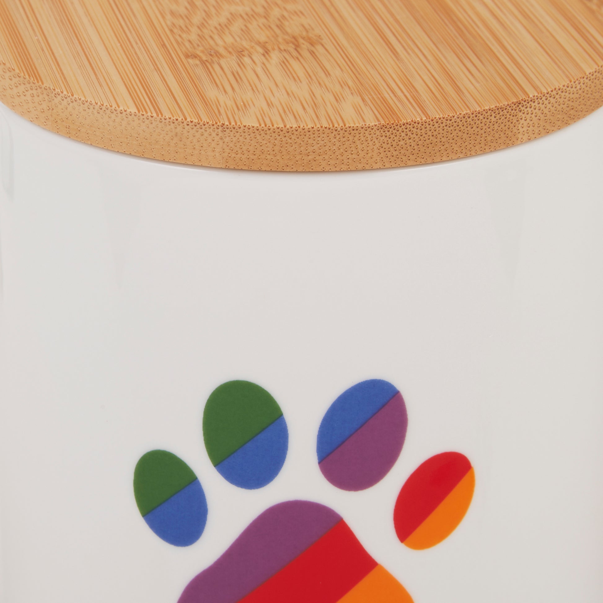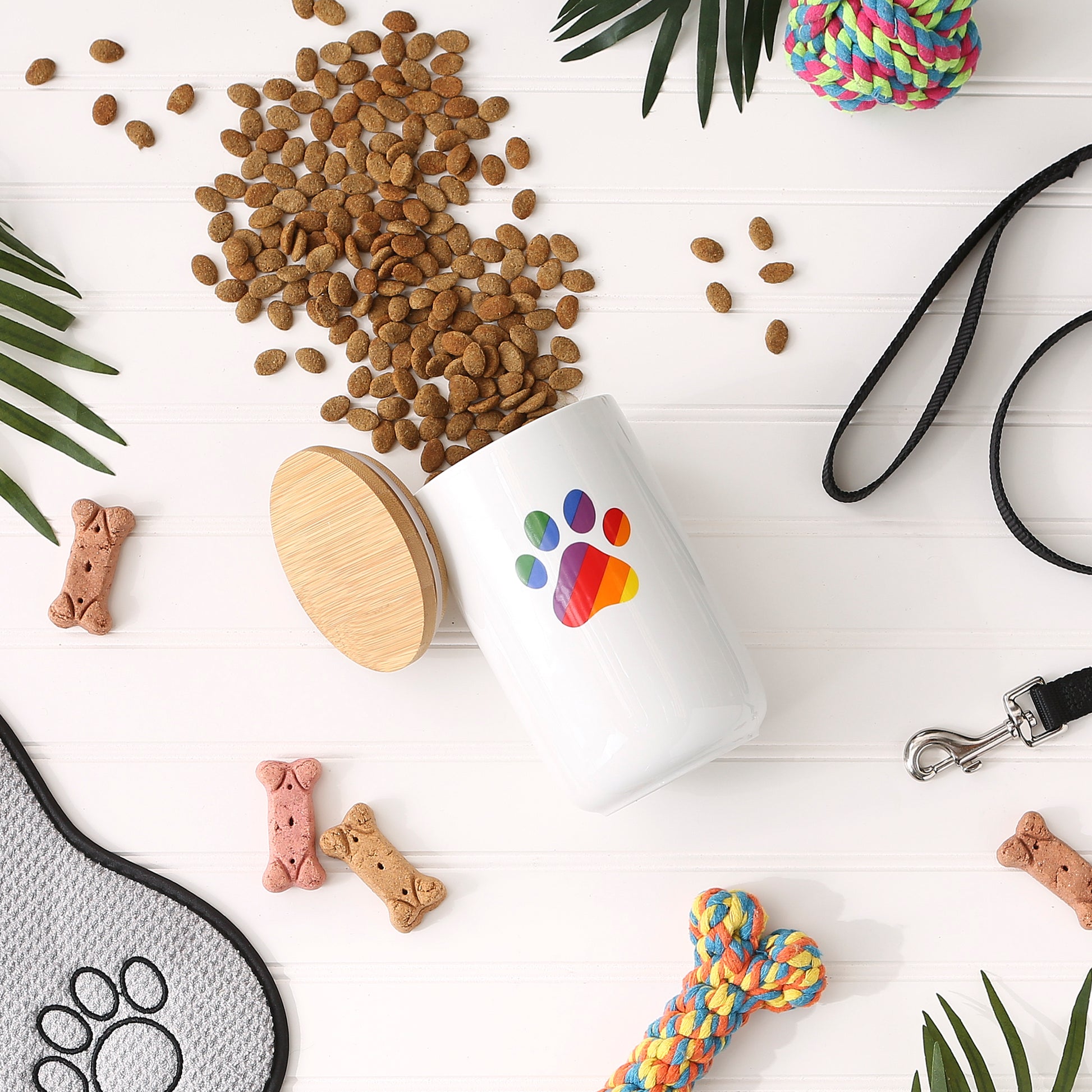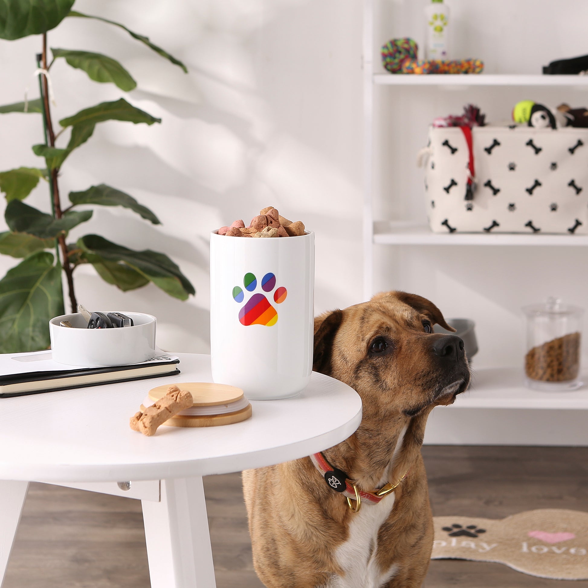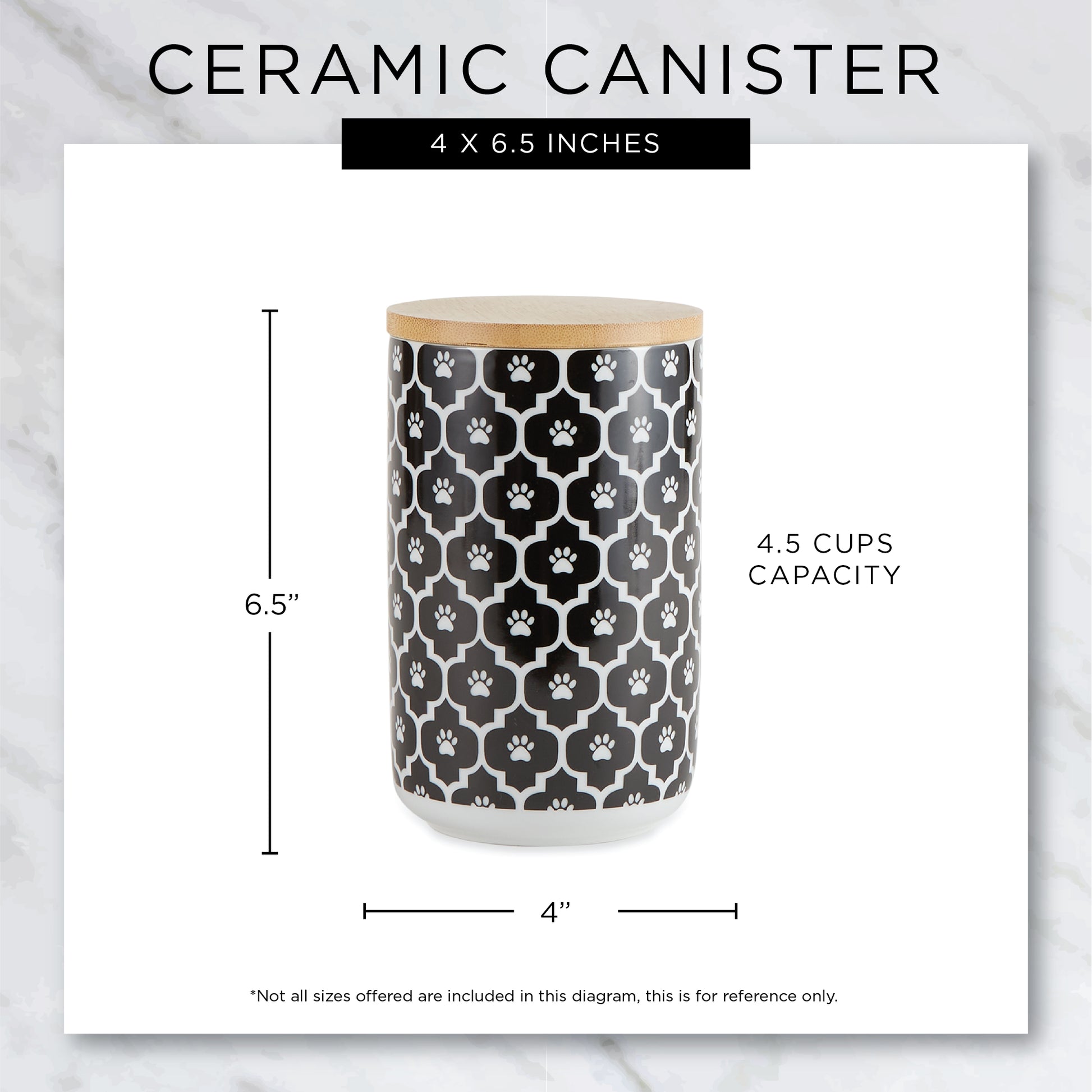- Treat canister measures a 4 inch diameter by 6.5 inch height, perfect for storing pet food, treats for dogs and cats or even your cookies, coffee, tea, cocoa, pasta, spice and herbs.