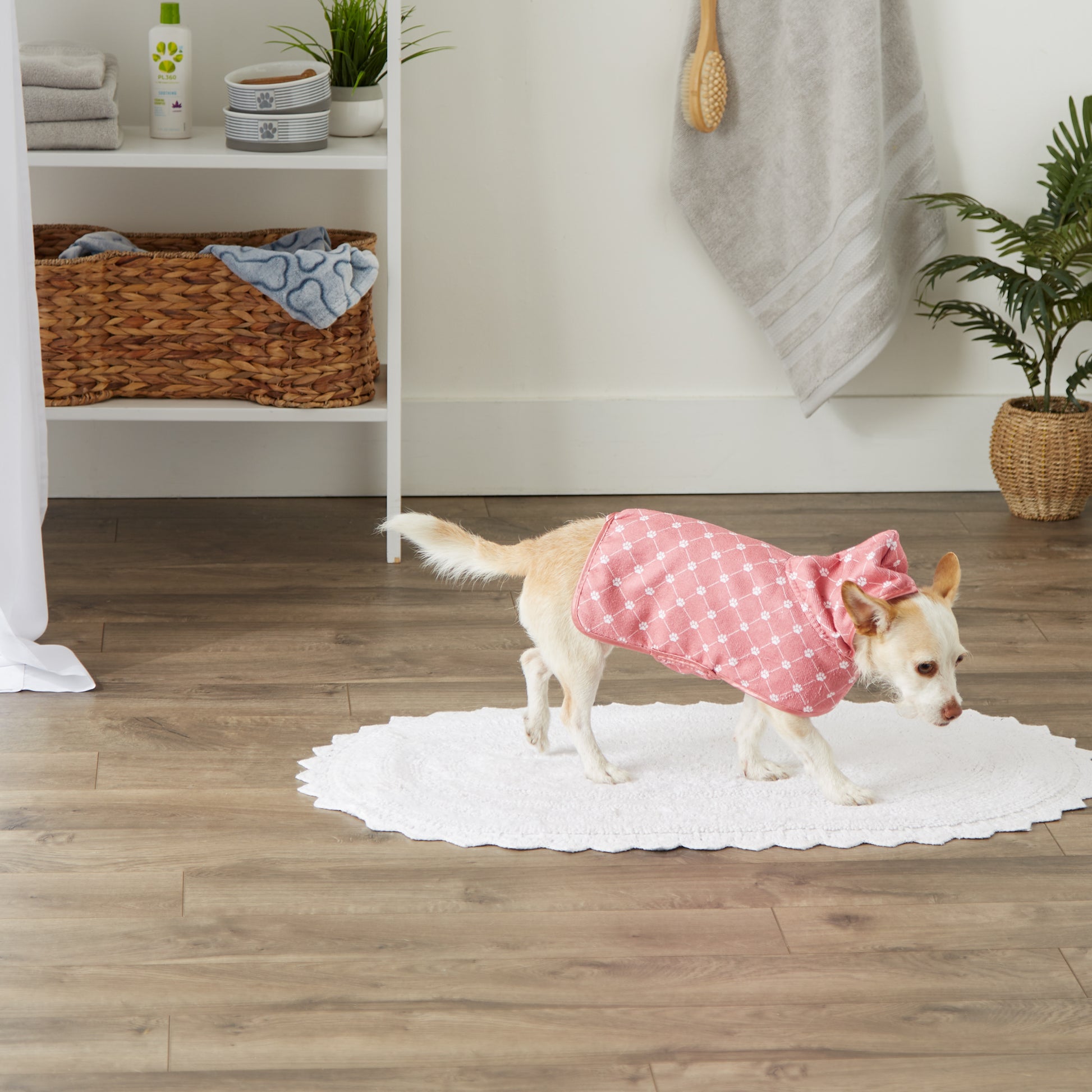 Microfiber Pet Robe, Trellis Paw Print - Rose - X-Small, up to 10 Lbs