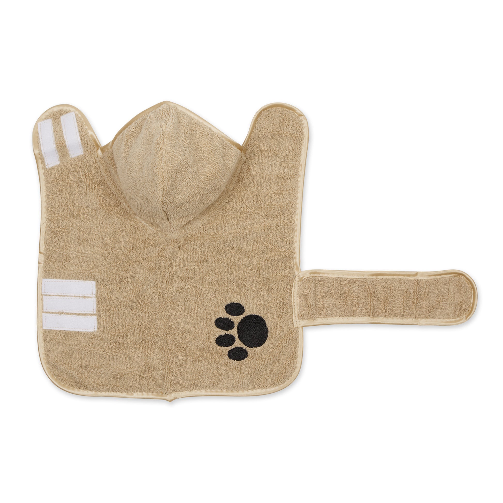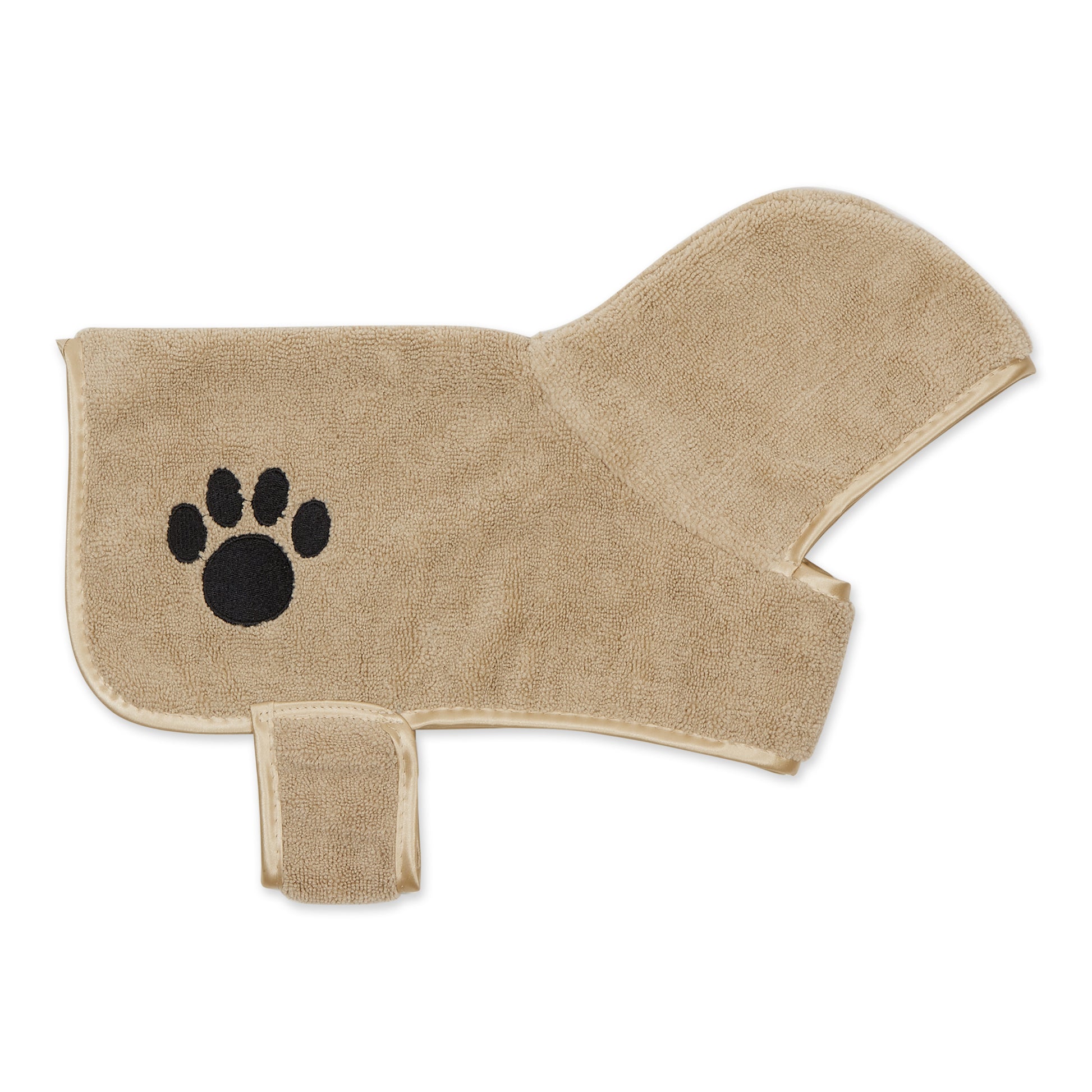 Bone Dry Terry Microfiber Pet Robe, Embroidered Paw Print - Taupe - X-Small, up to 10 Lbs